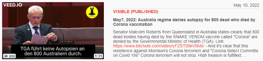 Video vom 10.5.2022: May7, 2022: Australia regime denies autopsy for 800 dead who died by Corona vaccination