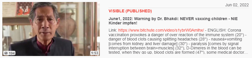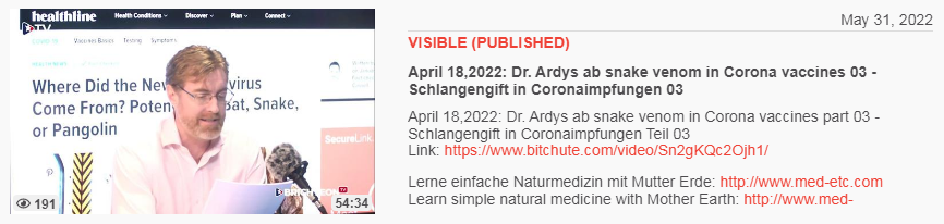 Video vom 31.5.2022: April 27,2022: Dr. Ardys ab snake venom in Corona vaccines 01 - Schlangengift in Coronaimpfungen 01