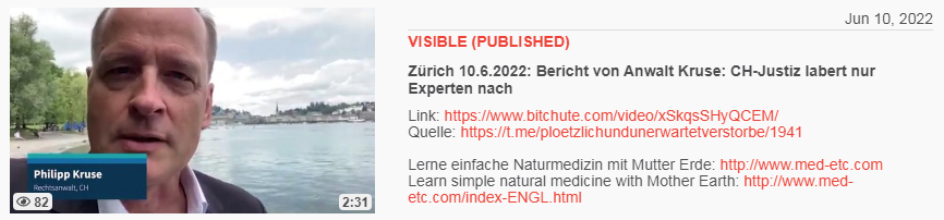 Video vom 21.6.2022: Prof. Dr. Konstantin Beck 21.6.2022: Übersterblichkeit Schweiz wegen "Coronaimpfung"