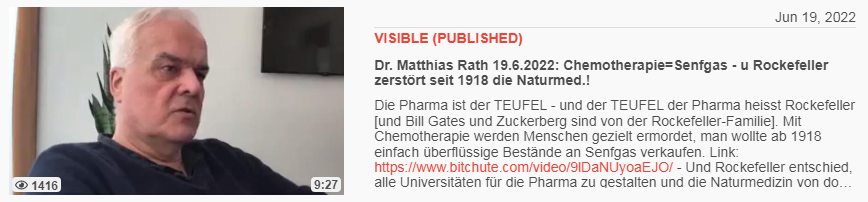 Video vom 19.6.2022: Dr. Matthias Rath 19.6.2022: Chemotherapie=Senfgas - u Rockefeller zerstört seit 1918 die Naturmed.!
