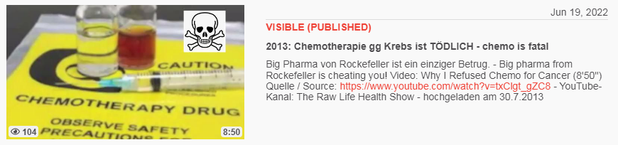 Video vom 19.6.2022: 2013: Chemotherapie gg Krebs ist TÖDLICH - chemo is fatal