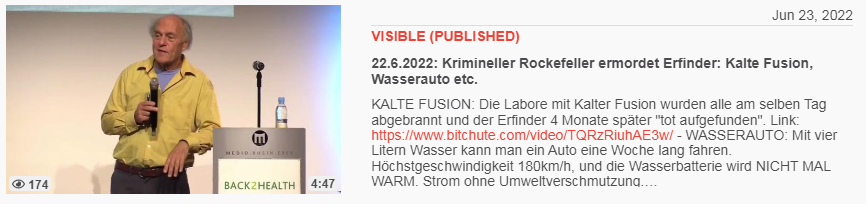 Video vom 23.6.2022: 22.6.2022: Krimineller Rockefeller ermordet Erfinder: Kalte Fusion, Wasserauto etc.